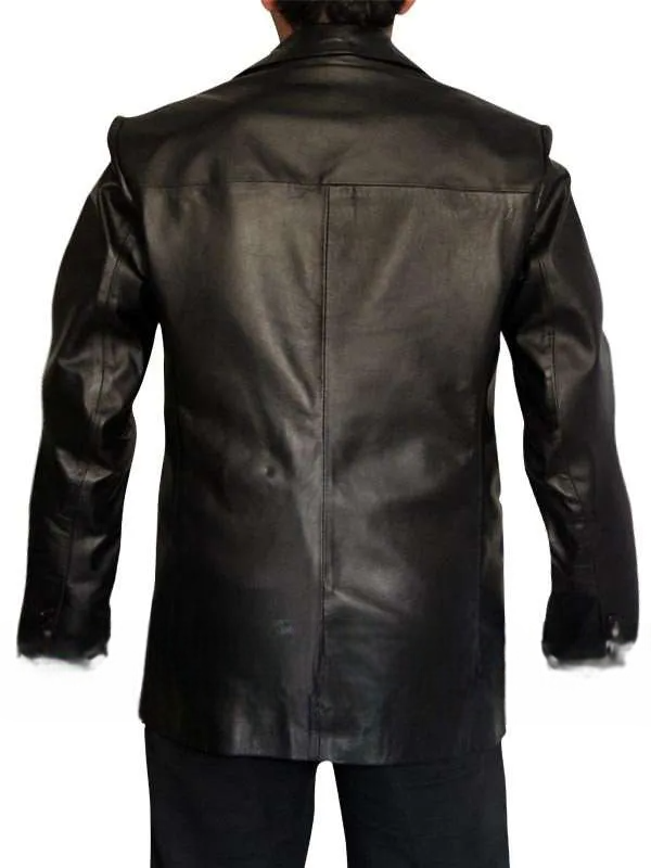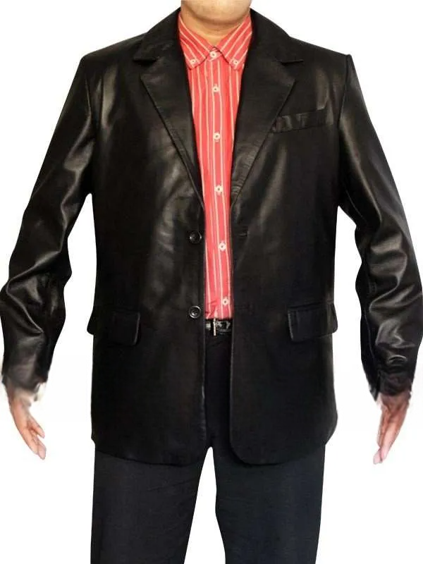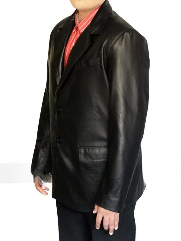 This jacket, crafted from the finest genuine leather, is not only durable but also comfortable, possessing a feel that actually gets better with time. The sleek black finish and minimalist design reflect an understated confidence, reminiscent of Chili Palmer’s signature calm and charisma. Every stitch is a story of craftsmanship, carefully tailored for a slim structured fit that enhances your physique while guaranteeing ease of movement.