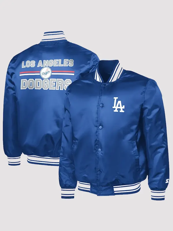 In case you are attempting to snatch that championship shine, then this Los Angeles Dodgers varsity jacket is the sole method to play it. We are referring to that high gloss, high end Dodgers satin jacket finish that is almost glowing in the stadium lights (or the city streetlights). It is not a mere fan merchandise but a premium Los Angeles Dodgers satin bomber jacket that is meant to be worn by the fans who understand that the LA style is a mood. You are wearing a piece of baseball history with a touch of high end streetwear DNA with the legendary Dodgers script on the chest and that full snap front. It is lightweight enough to wear during Cali nights but heavy weight enough to make a huge statement.