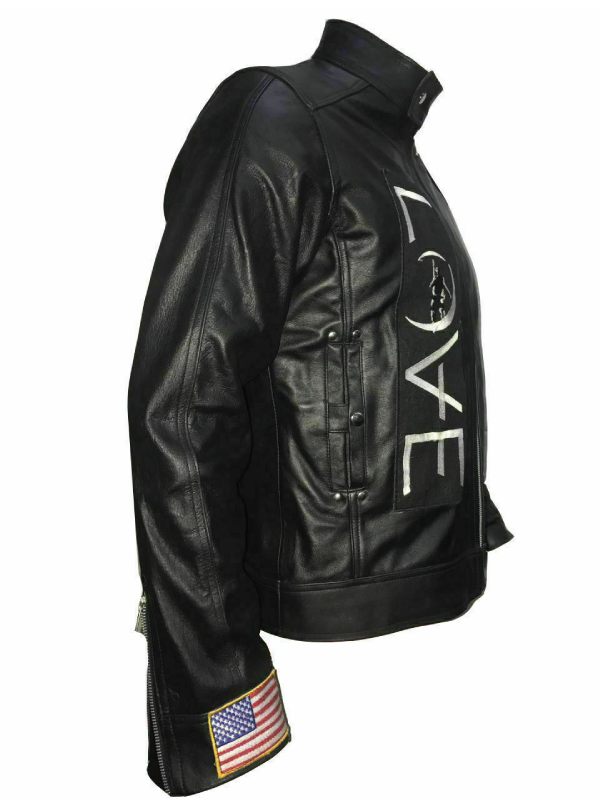 when you have ever desired to pour that film, airy power of the Love period, this is the time. This Tom Delonge Angels and Airwaves Black Leather Jacket is not just a piece of merch, but a high fidelity replica of the jacket that Tom wore when leading his musical art project around the world. We mean that Tom Delonge leather jacket style, smooth black hide, crisp tailoring and those infamous “LOVE” and “AVA” graphics that represent an entire movement. It has that just right astronaut cool, garage band ruggedness that Tom could only take away, and now it belongs to you to rock.