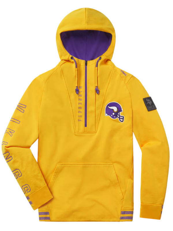 Every true fan knows that game day is more than football it’s a mindset. The UNRL x Minnesota Vikings ’23 Crossover Half Zip Hoodie perfectly captures that energy, combining performance, comfort, and pride for Minnesota in a sleek fan ready design. Crafted from ultra soft fleece, this UNRL x Minnesota Vikings hoodie will keep you warm, whether you’re at the stadium cheering or at home. The half zip design allows versatile wear unzipped for casual or zipped up for cozy. The hooded collar brings an added level to the Viking sideline hoodie experience in iconic purple and yellow that’s sure to make it pop.