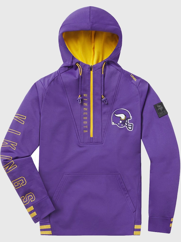 This UNRL Vikings half zip is a limited edition collector’s item, made with UNRL’s legendary craftsmanship. From sidelines to streets, the UNRL crossover hoodie elevates any fan’s wardrobe. If anyone is looking for ultimate Vikings fan gear 2023, this hoodie brings in unmatched comfort, style, and team spirit a true Vikings limited edition hoodie.