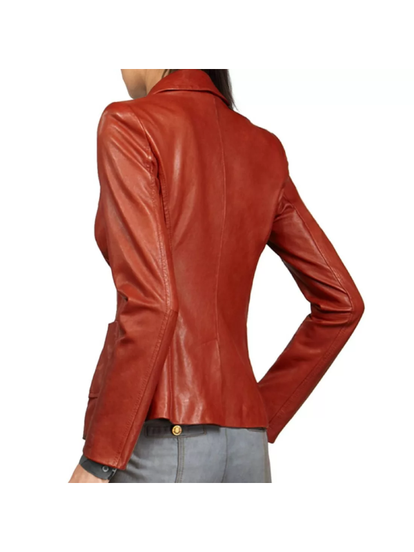 The Women Red Leather Blazer is a statement piece that combines style and sophistication with bold and contemporary style. This blazer is made of high quality leather and is designed to provide comfort and durability to the wearer, thus it can be used in any modern woman wardrobe. Its bold red color is a confidence and flair guarantee that you stand out in the office, at a casual brunch or even at a night out in the town.